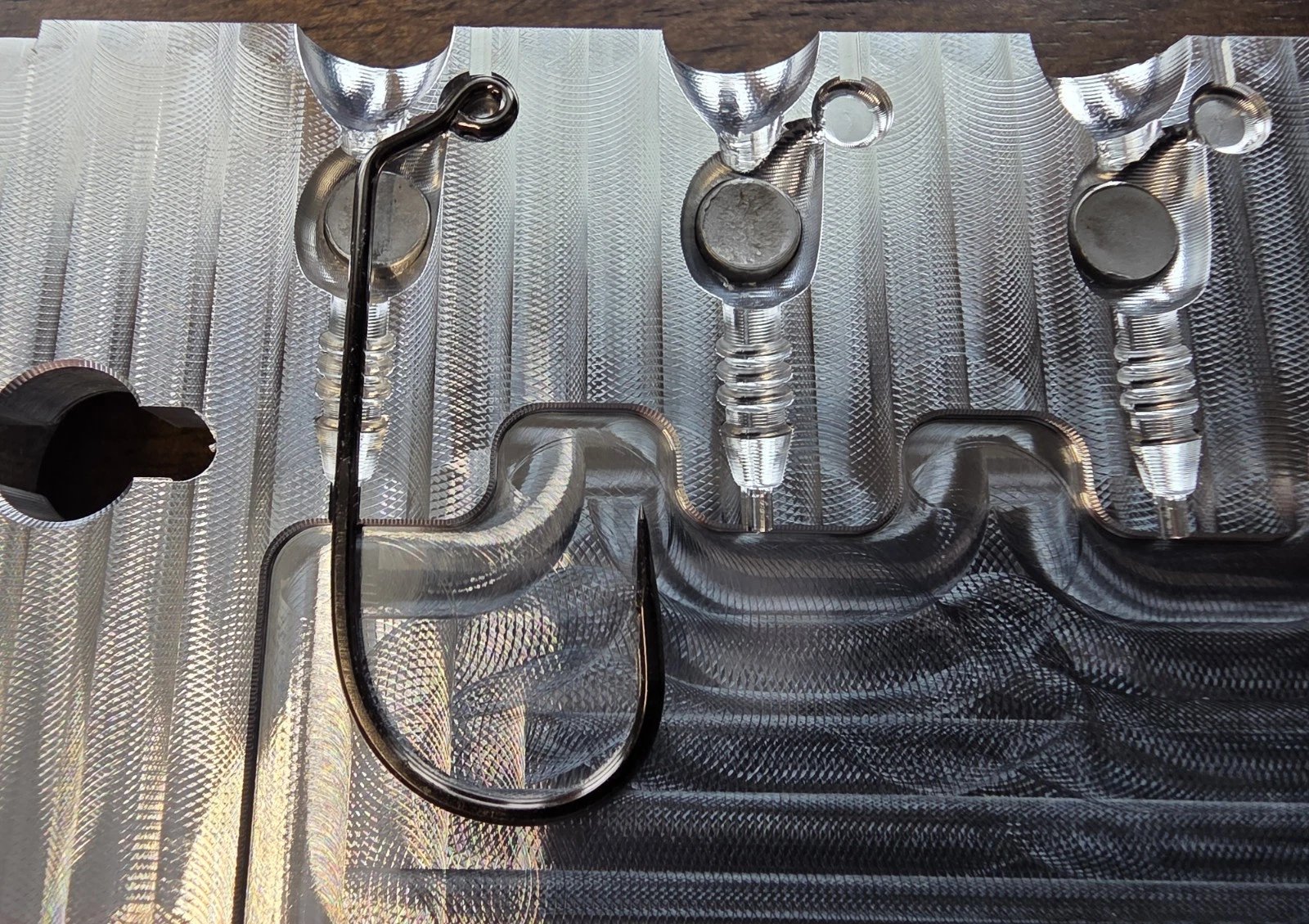The ribbed shank on this jig was specifcally designed and tested for use with plastics to help prevent the plastics from splitting.
